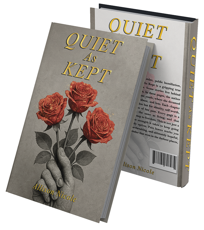 Allison Nicole is an author with a story that demanded to be written. Raised in a world where silence was expected, she found healing in writing the truth. Quiet as Kept is her first book — a bold and unfiltered memoir about pain, betrayal, survival, and the strength to keep going.